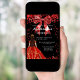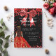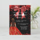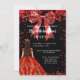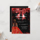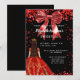 Um convite moderno, na moda e glamouroso para uma doce festa de aniversário 16, 16. Um fundo preto com brilhos, um vestido vermelho e um arco vermelho. O nome é escrito com um moderno estilo escrito à mão. Personalize e adicione os detalhes da sua festa.