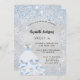 Para um doce elegante 16, 16 anos. Um fundo metálico falso prateado. Decorado com poeira azul esfolada e um vestido para uma festa de maravilha do inverno. Personalize e adicione um nome, idade e detalhes da festa. O nome é escrito com um script de estilo manuscrito