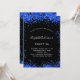 Uma garota e uma moda Doce 16, 16. convite de aniversário. Um fundo preto chic. Decorado com brilho azul real, brilhos. Personalize e adicione um nome e detalhes da parte. O nome é escrito com um script de estilo manuscrito.