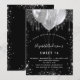 Um fundo na moda preto. Decorado com falso brilho prateado e balões. Personalize e adicione um nome, idade e detalhes da festa. O nome é escrito com um script de estilo manuscrito