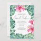 Celebre em estilo com este elegante convite do Sweet 16, perfeito para uma festa de luau moderna e tropical. Apresentando as palavras "Dezesseis Doce" em uma escrita manuscrita em chic, este design combina sofisticação com uma vibração tropical divertida — ideal para aqueles que planejam uma festa de luau tiki na praia ou uma celebração ao ar livre em casa. Adorado com flores florais cor-de-rosa e com folhas de monstera de palmeiras, este convite captura lindamente os 16 temas do partido Trendy Sweet. Os detalhes do evento são exibidos em cinzas de carvão clássicas em um fundo branco nítido, criando uma aparência de eterno e na moda. Projetado com as iniciais florais de aquarela pela artista Victoria Grigaliunas, este convite é uma escolha destacada para qualquer tema da celebração do 16° aniversário. O verso apresenta um azul de turquesa de vidro do mar complementar, acrescentando um toque tropical refrescante. Quer você esteja hospedando uma festa tiki no quintal, um luau casual, ou um jardim tropical ou uma festa de piscina, este convite dá o tom perfeito para uma celebração inesquecível. Para mais 16 ideias de festa e designs modernos de aniversário de aquarela, visite www.zazzle.com/dogellabelle.