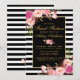 Cartão de Convite Dourado Floral Rosa-Rosa, com 16 Bons-de-Aniversário - Stripes Negras e Brancas