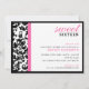 Este doce 16 convite moderno apresenta damasco preto e branco, uma borda preta e uma faixa de cor ousada. Adicione suas informações usando o formulário modelo. Use o recurso "Personalizar" para alterar a fonte, o layout e as cores.