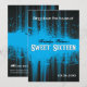 Um fundo azul elétrico funky, manchado contra o preto rico dá a este convite do doce 16 o olhar de um clube nocturno ou de um insecto do evento. Aperfeiçoe para o adolescente e seus amigos que amam a vida noturno e para ter uma boa estadia! Uma mensagem principal sobre os impressões do partido na parte superior acima da massa suja azul brilhante que offseting seu nome e as palavras "doce dezesseis" rendeu em um estilo tipográfico ornamentado. A imagem é invertida na parte de trás do convite indicar os detalhes do partido. Disponível em cores alternativas com produtos de harmonização.