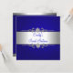 Trim de Flor Prateado no Convite para Corações de Amor Floral Azul Cobalto, Doce 16 Festas de aniversário. Personalize com seus próprios detalhes. RSVP correspondente disponível.