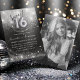 Seu Doce 16 será inesquecível com este convite glamouroso com sotaques reluzentes. A caligrafia "Doce 16", aliada a um número no estilo do balão e estrelas brilhantes sobre fundo negro, exude elegância e charme. Ao contrário, um modelo de foto personalizável transforma sua foto em uma imagem tradicional em estilo Hollywood preto-e-branco, dando ao convite uma vibração antiga, mas moderna. Este design define perfeitamente o palco para uma celebração digna de estrela e faz uma declaração ousada para o seu evento de marco.