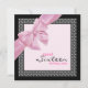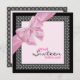 Um doce convite de aniversário personalizável de 16 anos com temas cor-de-rosa e preto, com um padrão moderno e um arco cor-de-rosa. Personalize-o com seu próprio texto ou personalize-o ainda mais se você quiser editar o layout.