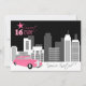 © Designs socialitas. Uma limusine rosa divertida no doce convite de aniversário 16 da cidade. Personalize com suas informações de partido.