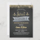 Um convite brilhante. Prata e ouro brilham sobre fundo escuro com fonte divertida.