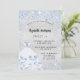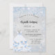 Para um doce elegante 16, 16 anos. Um fundo metálico falso prateado. Decorado com poeira azul esfolada e um vestido para uma festa de maravilha do inverno. Personalize e adicione um nome, idade e detalhes da festa. O nome é escrito com um script de estilo manuscrito