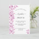 Um convite moderno e bolsa mensageifesta de aniversario elegante para uma doce 16, 16 festa de aniversário. Um fundo branco-quic decorado com prigos botânicos, florais e folhagem cor-de-rosa. O nome é escrito com um script de estilo manchado de tendência com alternâncias. Texto preto. Para manter as hastes, exclua apenas o nome da amostra, deixe os espaços ou emoji na frente e depois do nome. Traseiro: cor de fundo rosa.