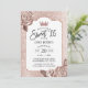 Moderna Rosa de Blush Dourada Princesa Floral Doce Doce 16 Convites de aniversário.