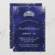 Para um doce elegante 16, 16 anos. Uma cor azul de fundo, a cor azul é irregular. Decorado com pó falso prateado e uma tiara, coroa. Personalize e adicione um nome, idade e detalhes da festa. O nome é escrito com um script de estilo manuscrito
