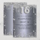 Um convite moderno, na moda e glamouroso para uma festa de aniversário Doce 16, 16. Um fundo com aparência de prata falsa, decorado com poeira brilhante. Personalize e adicione o seu nome e detalhes da festa. O número 16 é escrito com uma fonte de estilo de balão, script.