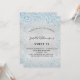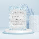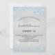 Para um doce elegante 16, 16 anos. Um fundo metálico falso prateado. Decorado com poeira azul esmaecida. Personalize e adicione um nome, idade e detalhes da festa. O nome é escrito com um script de estilo manuscrito