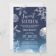 Elegante Marinho Azul Praia Peixe-Frio-Coral Fresco Doce 16 Convites de Aniversário.