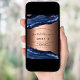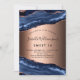 Um convite moderno, elegante e sofisticado para uma festa de Sweet 16, festa de aniversário de 16 anos. Fundo de pedra de ágata, mármore azul e rosa dourado. O nome é escrito com um estilo de letra manuscrita moderna. Personalize e adicione os detalhes da sua festa.