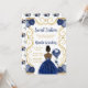 Este doce 16 convite apresenta uma elegante estrutura de ouro, uma bela princesa com pele escura e um vestido azul marinho, flores e um balão. Isto é perfeito para uma doce festa de aniversário de dezesseis.