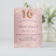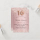 Para uma elegante festa de aniversário 16, 16. Um plano de fundo de gradiente cor-de-rosa. Decorado com rosa dourado falso poeira brilhante. Personalize e adicione um nome e detalhes da parte. O nome é escrito com um script de estilo manuscrito. O número 16 é escrito com uma fonte no estilo do balão.