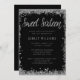 Moderno preto e prateado brilha doce 16 convites. Estes doces convites são fáceis de personalizar para o seu partido. Os designs são ilustrações/gráficos impressos planos - NÃO É REAL SILVER GLITTER.