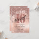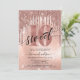 Moderno, moderno 16º convite de aniversário. Design apresenta gotas de brilho rosa dourado, folha falsa e fundo brilhante, número 16 na letra rosa dourada da tendência, script de tipografia doce 16 e detalhes da festa.