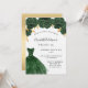 Convites Doce 16 vestido de ouro verde esmeralda de luxo fl
