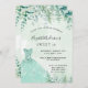 Um convite de tendência para um tema de floresta encantado 16, 16, festa de aniversário, encantado. Um fundo de cor aquosa verde com samambaias e eucalipto verde, um vestido verde. O nome é escrito com um moderno estilo escrito à mão. Personalize e adicione os detalhes da sua festa.