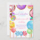 Doce Celebração Candy Lollypops Convite Colorido Para Menina Procurando um convite rosquinha fofo e divertido para um doce aniversário de uma garota? Rosquinha preocupada! Basta editar texto e personalizar seu próprio convite fofo!