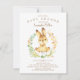 Adorável convite de coelho bebê com um belo coelho rodeado por uma coroa colocada sobre um fundo de madeira rústica para um chá de fraldas neutro em termos de gênero. Sacudir nosso convite para ver uma coordenação de volta para um toque especial extra.