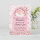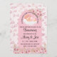 Este design de cartão de chá de fraldas apresenta um fundo de bolhas, uma borda floral e um arco rosa com um bebê dormindo em uma nuvem. É uma forma encantadora e encantadora de celebrar a chegada de um pequeno novo. O cartão oferece amplo espaço para personalização do dia especial. Personalize este belo convite com os detalhes do seu partido, simplesmente pressionando o botão "personalizar este modelo" para atualizar e formatar o texto.