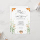 Um encantador convite para chás de fraldas com cores aquáticas, flores silvestres e pequenas abelhas, com a frase "doce como se pode ser" está em uma fonte fofa no topo. Um pouco de mel fica no fundo, e o pente de mel nos cantos superiores. As costas têm as mesmas bordas florais com algumas abelhas.