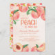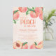 Este convite entre as folhas verdes pintadas em aquarelas, pequenos pêssegos doces são decorados com letras bonitinhas e bonitinhas.