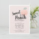 Este convite de aniversário de uma menina Pêssego e kawaii "Docinho como Pêssego" apresenta uma cor de pêssego com rosto em um fundo cor-de-rosa claro enquadrado por uma fronteira branca. O verso apresenta um fundo cor-de-rosa pêssego com padrões de bolinhas. Personalize para suas necessidades. Você pode encontrar mais produtos correspondentes na minha loja.