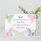 As borboletas de vibração brilhantes destacam este convite dezesseis doce. Mostra-se no papel básico; contudo, eu recomendo o peso e a textura do papel de linho.
