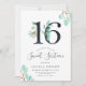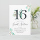 Um convite divertido e fresco para 16 de aniversário com nova aquarela de broto em eucalipto em torno de suas informações de Festa de aniversário únicas. Apresenta números de aquarelas cobertos em verde botânico silvestre. No lado oposto da carta está uma cor energética verde para complementar a frente.