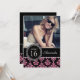 Feminino, divertimento, bonitos, contudo sofisticado e elegante, estes preto e convite de festas personalizados do doce dezesseis do damasco do brilho do rosa com sua foto são a maneira perfeita de convidar seus convidados ao partido do doce dezesseis da sua filha. Nota: o brilho é um efeito IMPRESSO da foto. Design por Elke Clarke©.