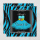 Doce Elegante Dezesseis Dezesseis 16 Aniversário Azul Zebra Negra Prateado. Elegante Clássica Todas Ocasião Apenas mude de idade. Convites de aniversário de festa Modelo