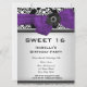 Doce 16 Doce 16 Festa de aniversário Damask Black White Flower Damask Convite para Evento de Flor Púrpura para adicionar seu texto Todas as partes Púrpura preto branco