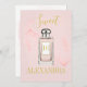 Uma abertura cor-de-água rosa é o fundo desta garrafa de perfume francesa clássica. O rótulo do frasco tem o número 16, mas pode ser alterado para qualquer idade. O nome numa cor dourada pode ser facilmente alterado para o seu próprio design pessoal.