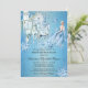 Um Convite de festas Real dos Dezesseis apresenta uma princesa correndo em direção a um castelo. O fundo azul arma os flocos de neve brancos que criam uma Terra Maravilha de inverno.