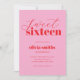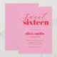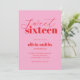 Mínimo doce 16.º aniversário convite com uma simples tipografia moderna, cor rosa e vermelha.