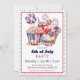 Convite de festas com doces patrióticos, balões e fogos de artifício em cores nacionais. Personalize facilmente o texto. - Kate Eden Art