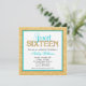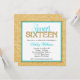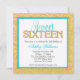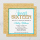 A festa de aniversário na moda do doce dezesseis convida. Caracterizando um brilho do ouro do falso projete com acentos do azul da cerceta. O design é gráficos impressos plano - BRILHO NAO REAL.