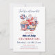 Convite de festas com doces, balões e fogos de artifício em cores patrióticas nacionais. Personalize facilmente este convite de festas de 4 de julho com seus detalhes. - Kate Eden Art
