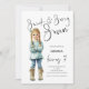 Doce e Sassy Sete 7 Festa de aniversário. Escrita manual de na moda e uma ilustração fofa de uma menina de cabelos justos para este convite de aniversário de sete anos. O script de cabeçalho, Sweet & Sassy Seven" e "Turns 7" está em um script de na moda definido. Personalize facilmente o resto das palavras com seus detalhes.