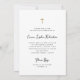 Este convite religioso simples e na moda, preto e branco em primeira comunhão apresenta uma tipografia timista, estilo vintage e uma cruz falsa de ouro. Adicione sua foto à frente. Um olhar elegante e clássico minimalista que ainda é único e contemporâneo e também neutro em termos de gênero, para um menino ou uma menina.