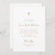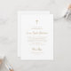 Este batismo religioso simples e na moda, branco e dourado ou convite de Natal apresenta uma tipografia de escrita caprichosa, estilo vintage e uma cruz falsa de ouro. Um olhar elegante e clássico minimalista que ainda é único e contemporâneo e também neutro em termos de gênero, para um menino ou uma menina.