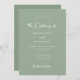 Este convite de casamento simples, na moda, sábio, verde e marfim apresenta tipografia de estilo vintage e caprichosa. O roteiro principal diz "o casamento de". Um olhar elegante e clássico minimalista que ainda é modesto e contemporâneo.