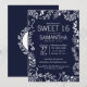 Padrão elegante, moderno e branco-chico e azul-marinho brilhante desenhado pela mão, convites de festas de celebração de 16 anos. Este design clássico e sofisticado é perfeito para a garota de aniversário de classe, tendências e na moda. Personalize com sua própria mensagem na frente e um monograma personalizado no verso. Todas as impressão design.