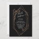 Nosso convite de aniversário preto moderno apresenta uma peça de centro geométrico de ouro rosa com flores delicadas.
